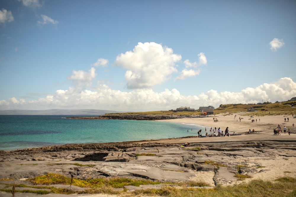 People don’t always expect beaches on the Aran Islands, but Inisheer has some gorgeous sandy stretches where the water turns a surprising shade of blue on sunny days.